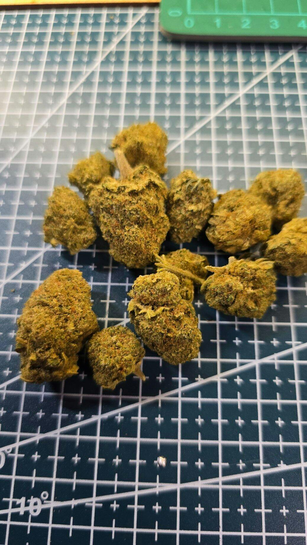 On est sur une fleur typique des Californiennes bien cultivées, poussées à leur maximum. On retrouve des fleurs de très gros calibre et parfaitement cultivées avec une manucure effectuée avec une précision laser !